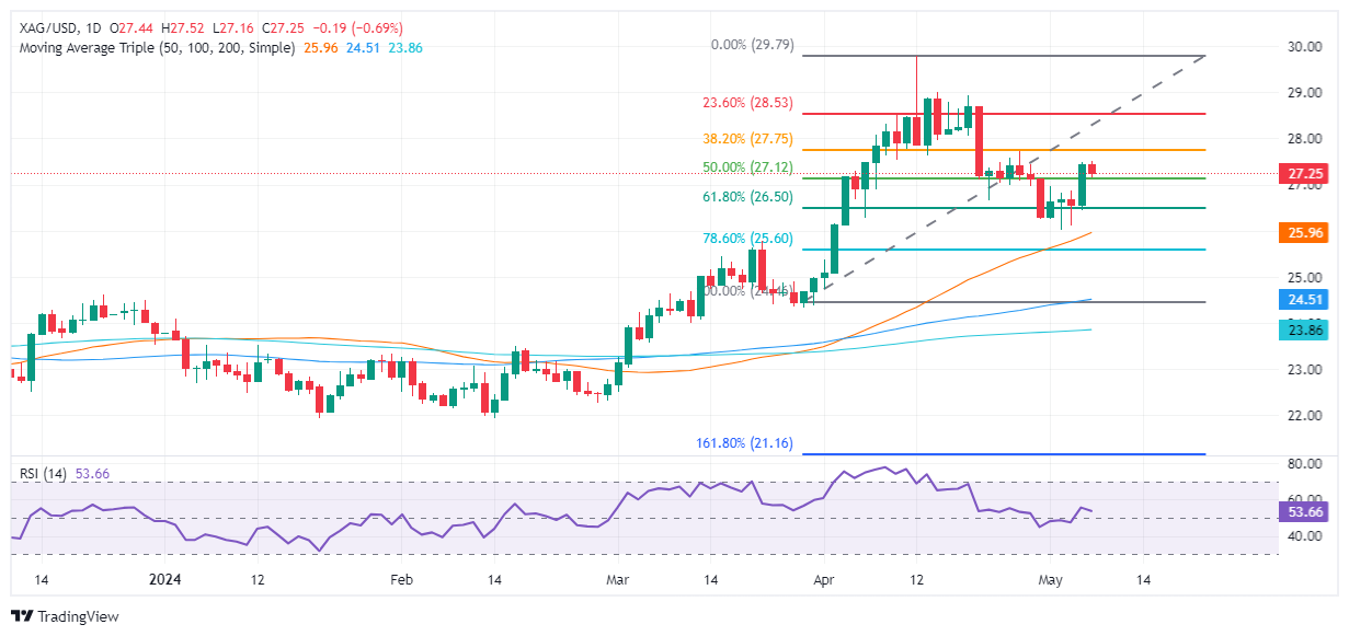 尽管周二回落至 27.20 美元区域,但灰色金属仍呈上行趋势。应该说,XAG/USD 仍在 50% 和 38.2% 斐波那契回调位内交易,该回调位来自最新周期的低点和高点,分别为 24.33 美元和 29.78 美元。