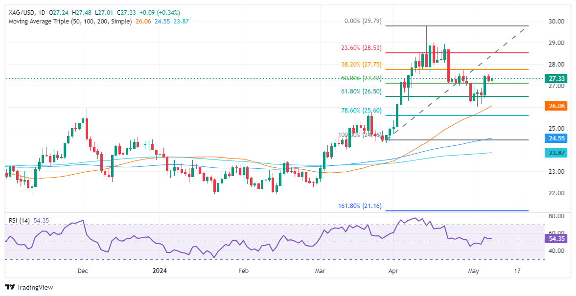 尽管美国国债收益率上升且美元走强,白银价格仍小幅上涨。灰色金属跌至 27.00 美元,但随着买家介入而攀升。XAG/美元交易价格为 27.33 美元,上涨 0.38%。