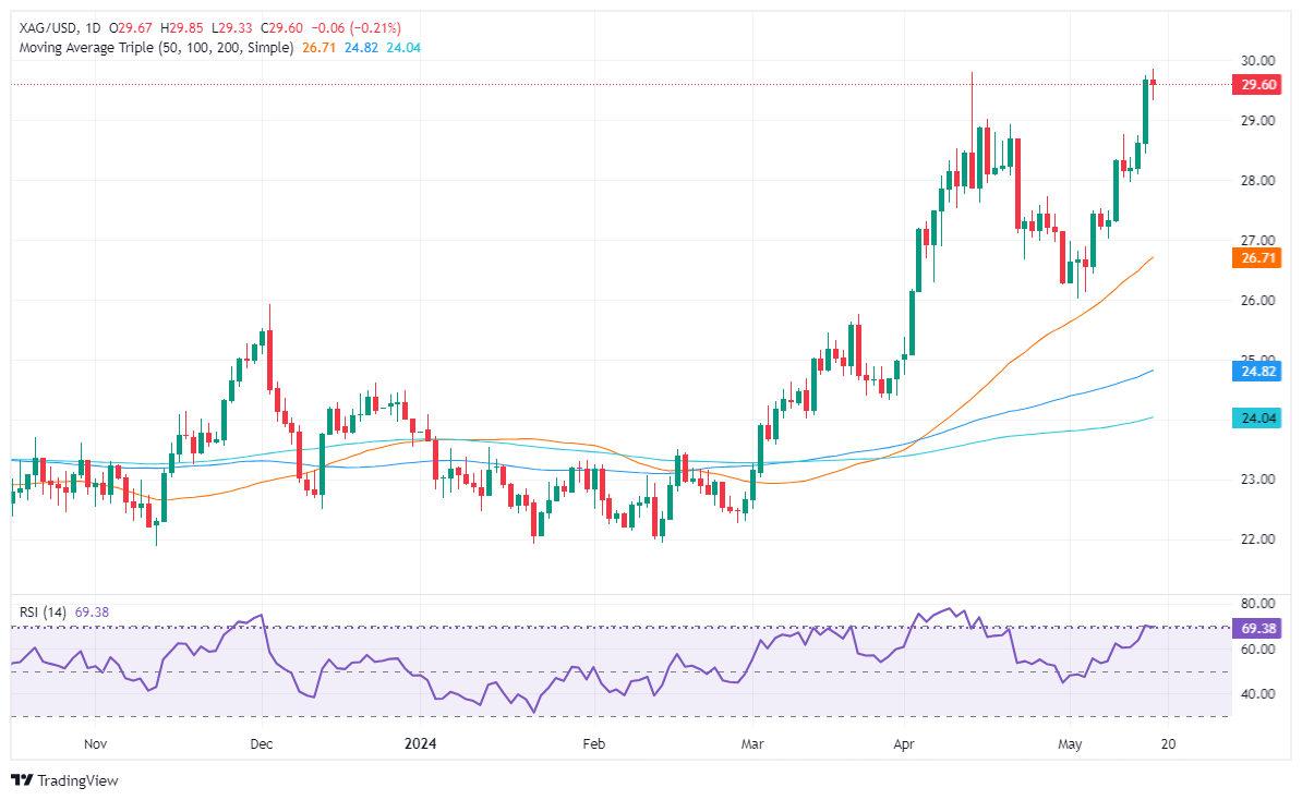 白银必须保持在 29.00 美元上方,才能挑战年初至今高点 29.79 美元以及进一步阻力位 32.15 美元和 35.40 美元。
