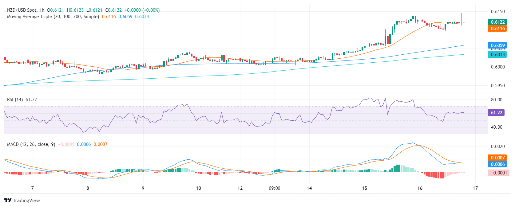 周四交易时段,纽元/美元持平于 0.6120 附近,因投资者似乎正在获利了结。在新西兰元突破其主要简单移动平均线(SMA)后,该货币对的前景转为看涨,但可能会进一步盘整。