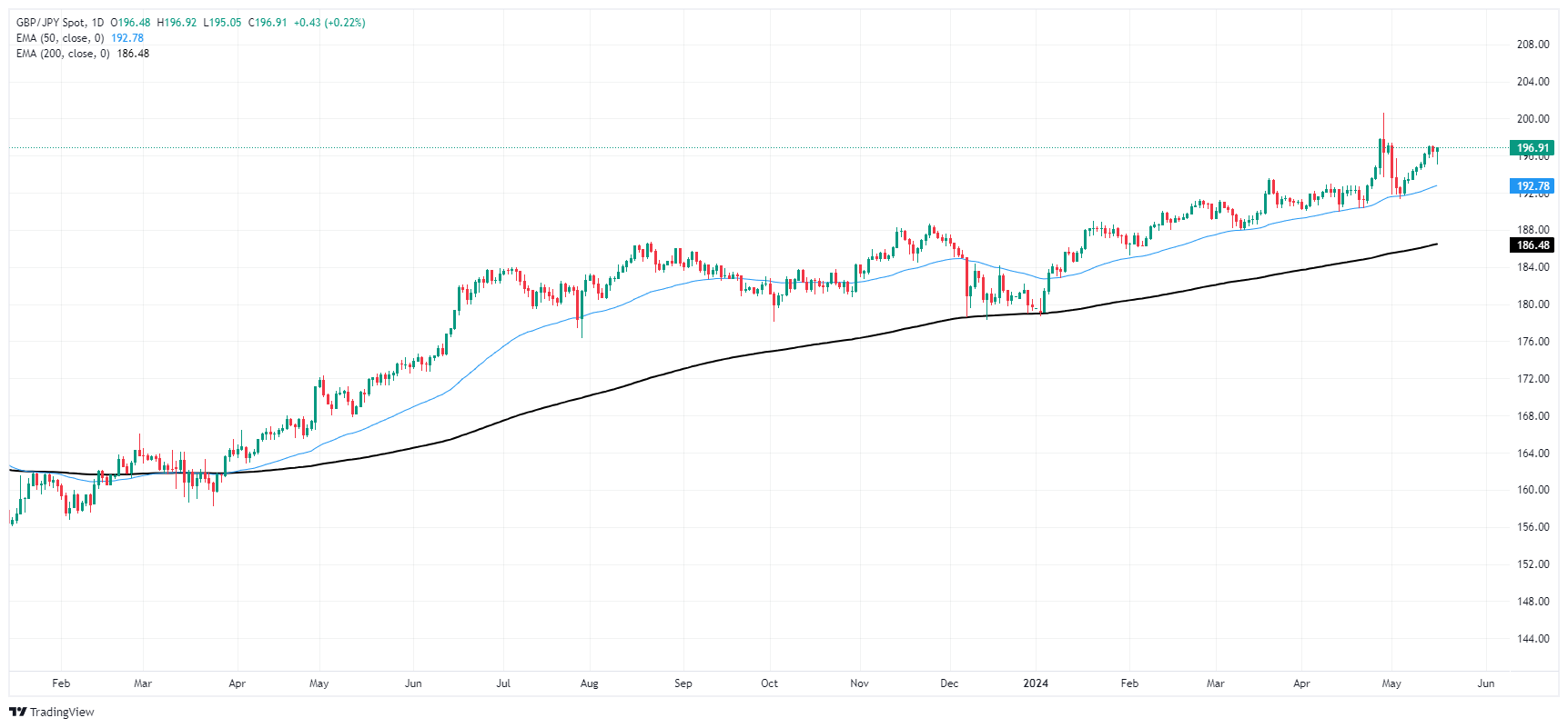 从周中回调中恢复后,英镑/日元周四回升至 197.00 关口。日本第一季度国内生产总值(GDP)收缩速度快于投资者预期,进一步削弱日元(JPY)后,该货币对收复失地。