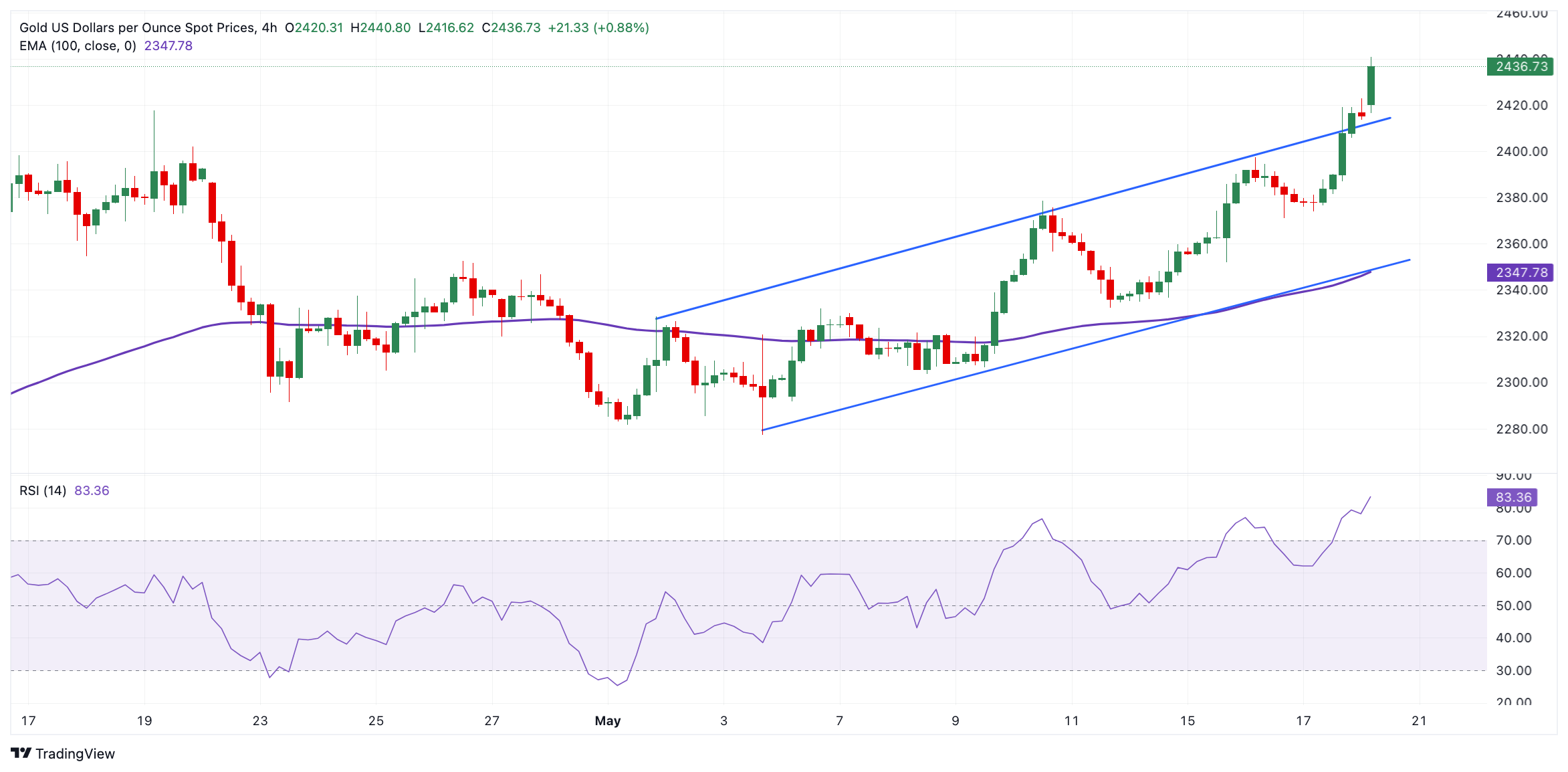 另一方面,由阻力位转变为支撑位的 2,415 美元将是黄金的第一个下行目标。关键的竞争水平位于 2,400 美元整数位,随后是 5 月 16 日的低点 2,370 美元。