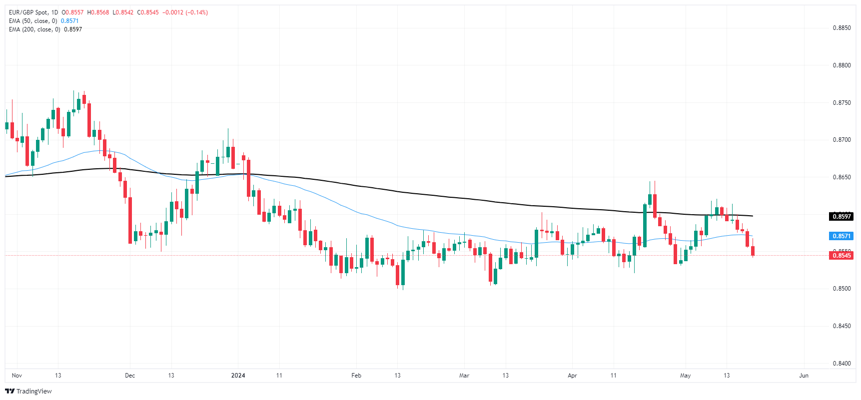 欧元/英镑周一进一步下跌,跌破0.8550,因欧洲央行(ECB)距离6月或7月首次降息越来越近,欧元兑英镑(GBP)承压。欧洲央行官员的谈话要点向市场发出了复杂的信号,导致欧元贬值,因为投资者正在努力应对中央计划者发出的不一致的信息。