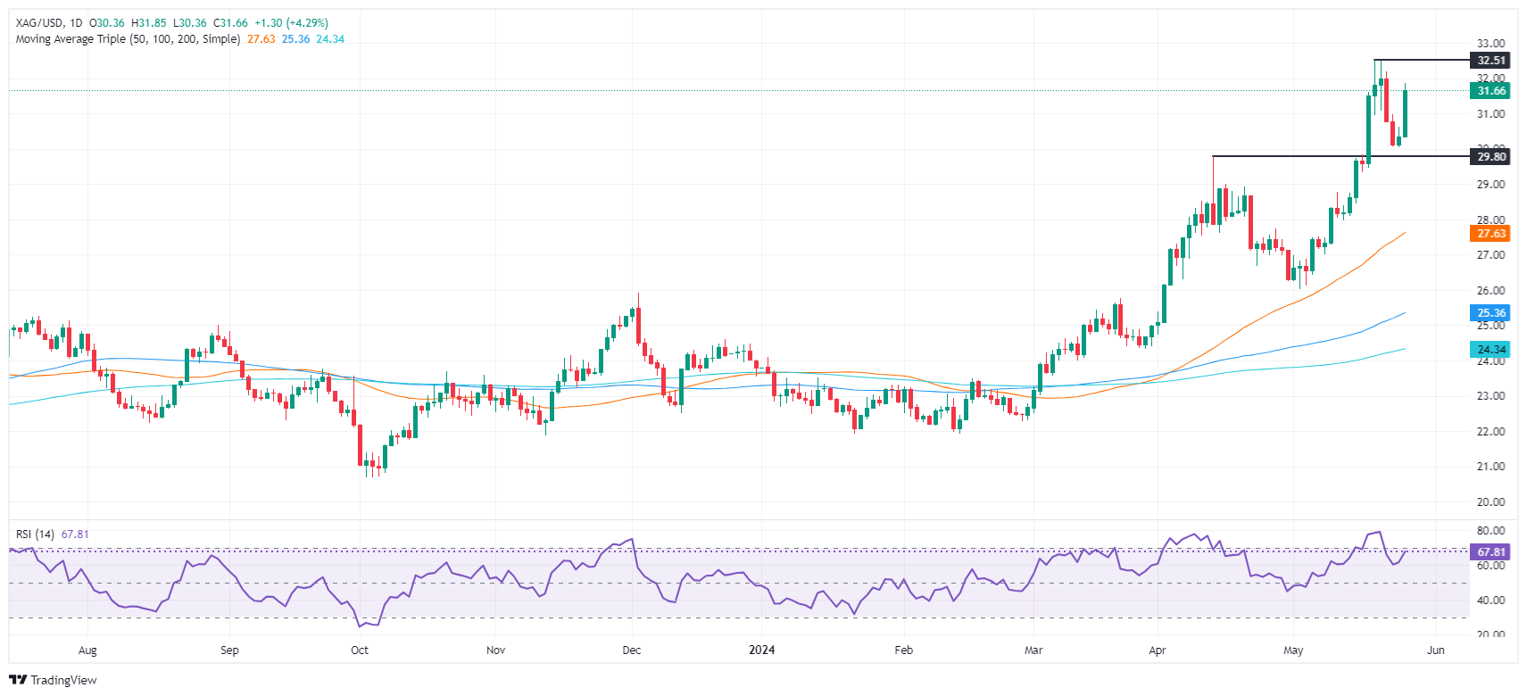 银价分析:在成交量较少的情况下,白银/美元在31.50美元上方飙升