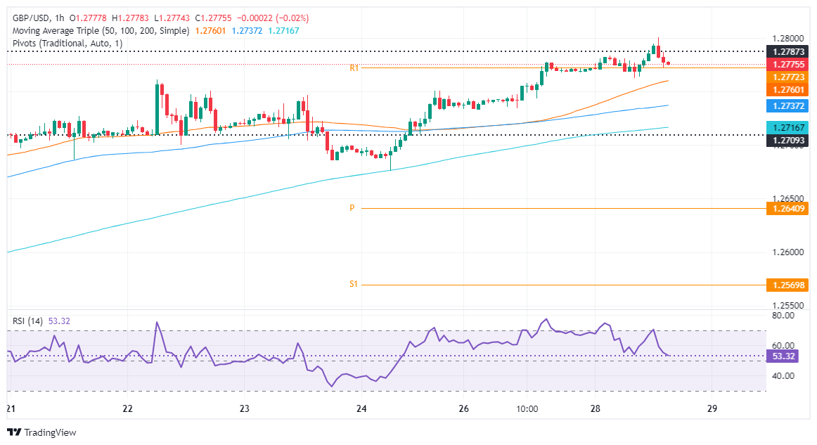 摘要:英镑/美元保持在1.2786点,较日高位上涨0.14%。