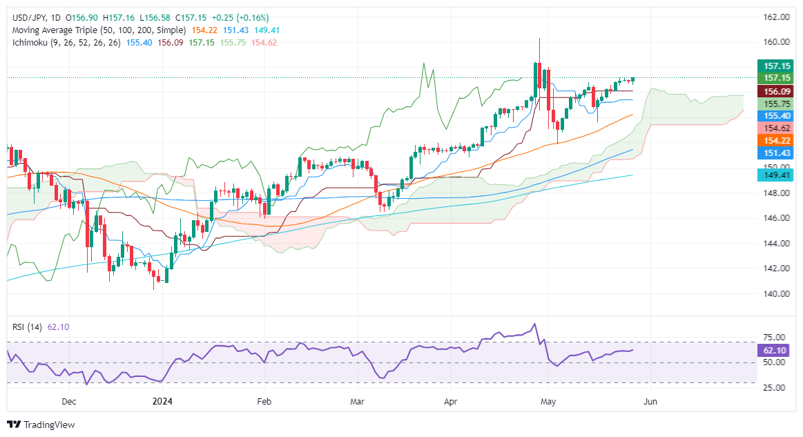 美元/日元价格分析:美元/日元触及157.15点两周高点,反映出持续上升势头