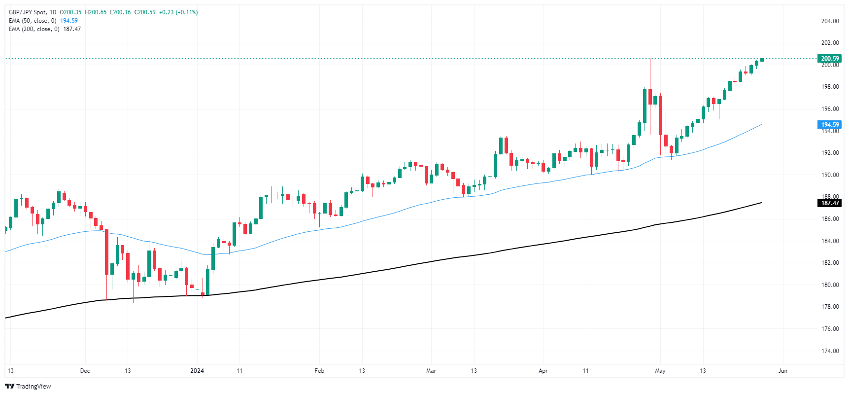 英镑/日元上涨了12%以上,在2024年初达到了200日指数移动平均值(EMA)。除了最近连续16个交易日中的3个交易日外,这两个交易日都已在绿区关闭。