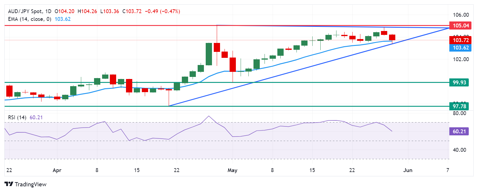 澳元/日元价格分析:突破率低于104.00,然后是14天EMA支持