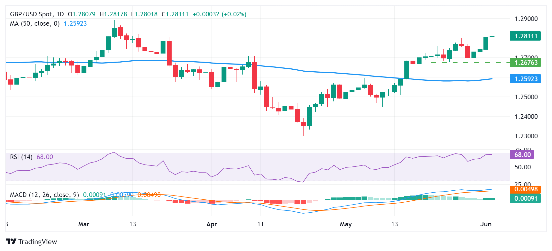 英镑/美元价格分析:多头在1.2800以上,自3月份以来最高