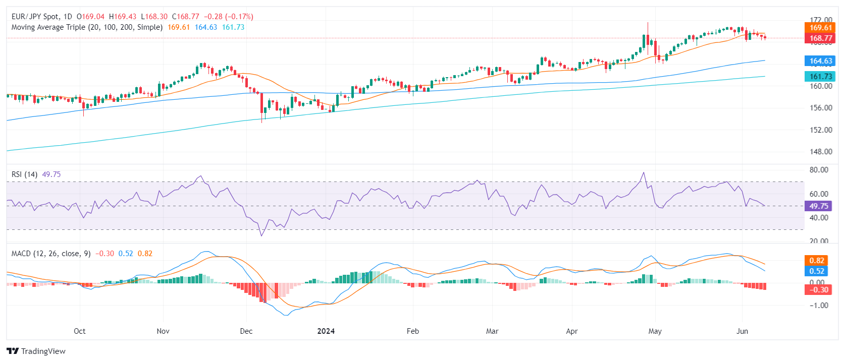 周二,欧元/日元对汇率继续在168.00点左右浮动,随着这对汇率对继续进行侧盘交易,出现了轻微的负波动。任何潜在的恢复都是在20天简单移动平均线(SMA)手中进行的,目前该平均线接近169.70马克,这是一个较高的边界障碍。