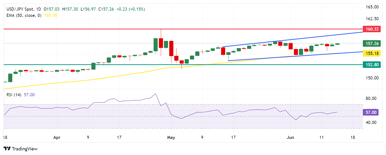 上周五,美元/日元交易量在157.20左右。每日分析 图表 显示了一个看涨的偏倚,在上升的通道模式中,一对合并。这种格局典型地表明上升趋势的延续,表明只要价格保持在渠道内,就有可能继续上涨。
