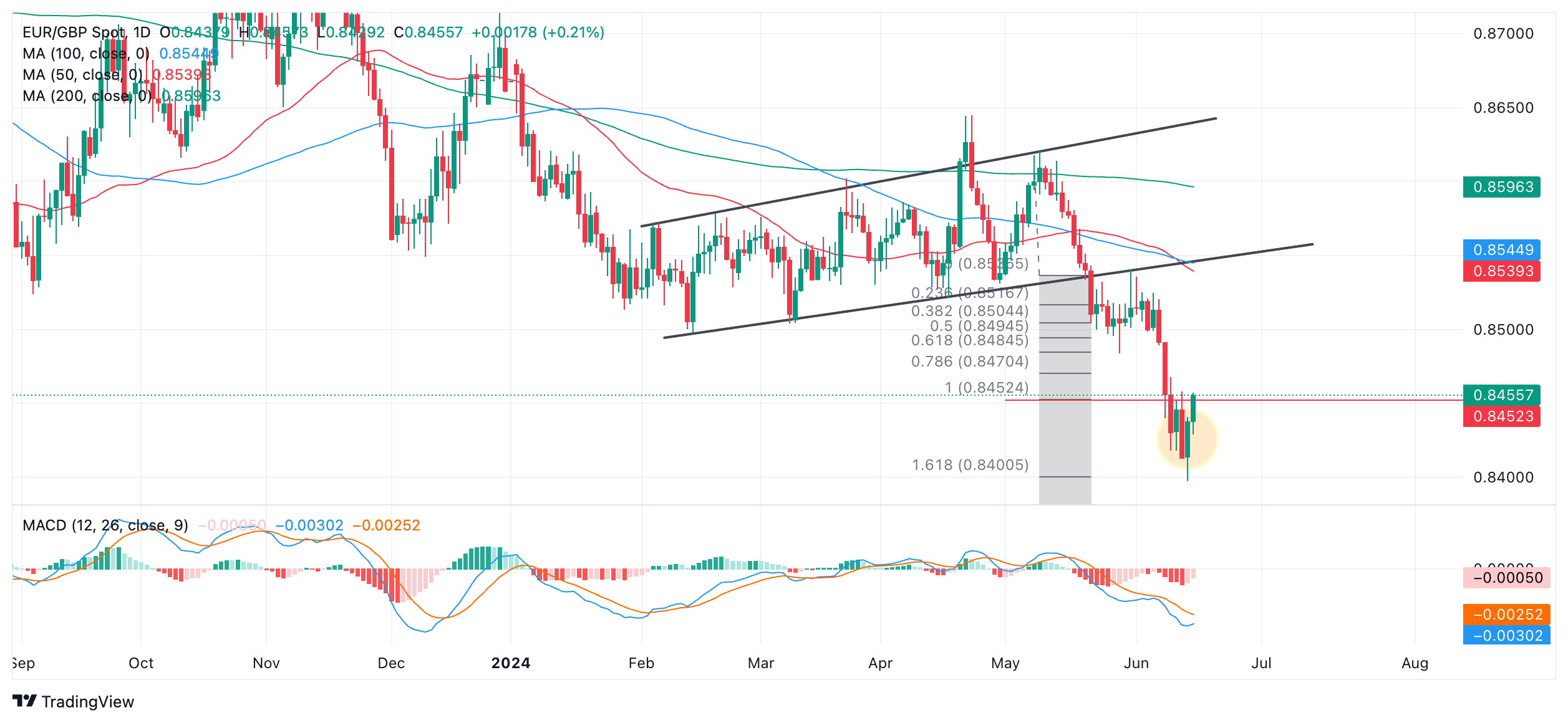 不过,欧元/英镑正处于整体下跌趋势,表明更多的下跌可能最终会实现。