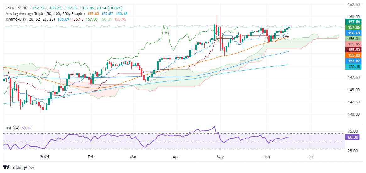 美元/日元价格分析:进展稳步但合并在158.00以下