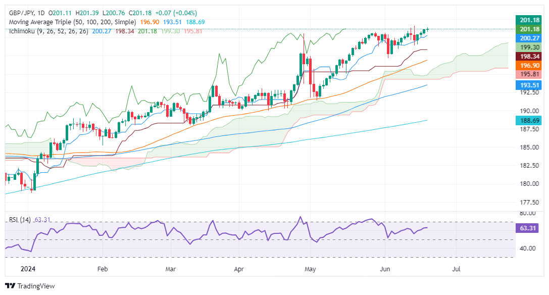 从好的方面看,英镑/日元的第一次阻力将是今年以来最高的201.61点,高于202.00点。