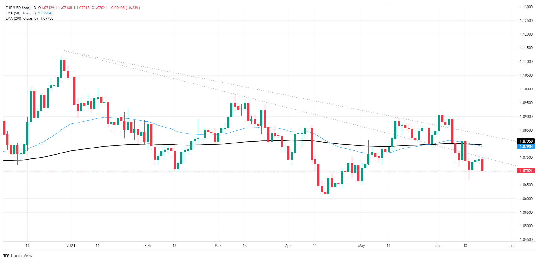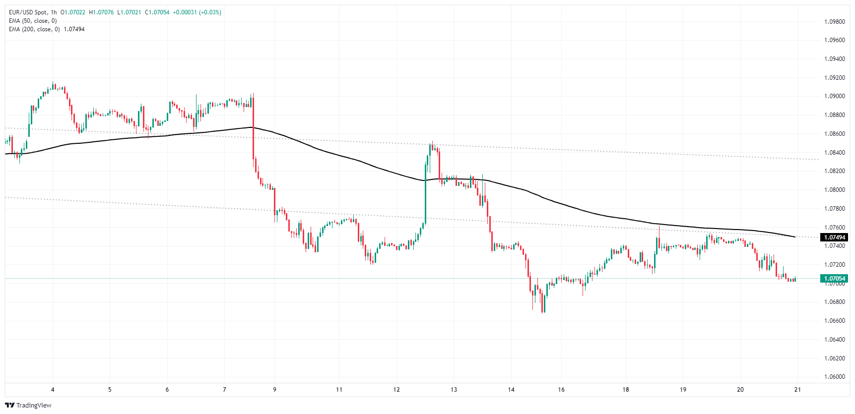 欧元/美元继续跟随着技术车的下跌,推动盘中行动进一步下降,因为200小时指数移动平均值(EMA)从1.0750下跌。纤维撞到1.0700把手,因为销售压力使这对产品达到上周最低点1.0670以下。