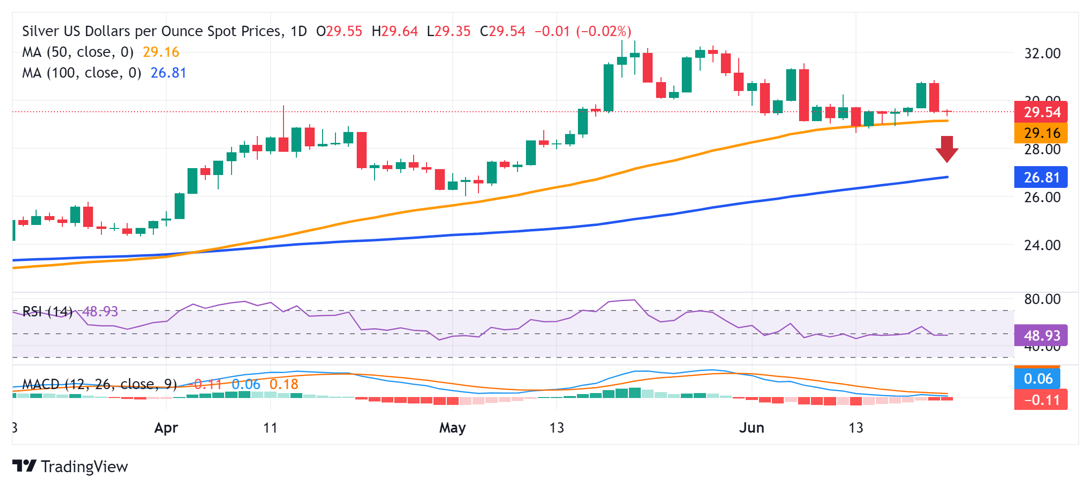 银价分析:白银/美元单线高于29,000美元,50天SMA是看涨的关键