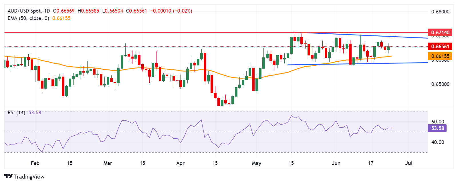 澳元/美元对可能在50天指数移动平均值(EMA)0.6615处找到支持,加上接近0.6585的额外支持,标记了矩形组的下边界。