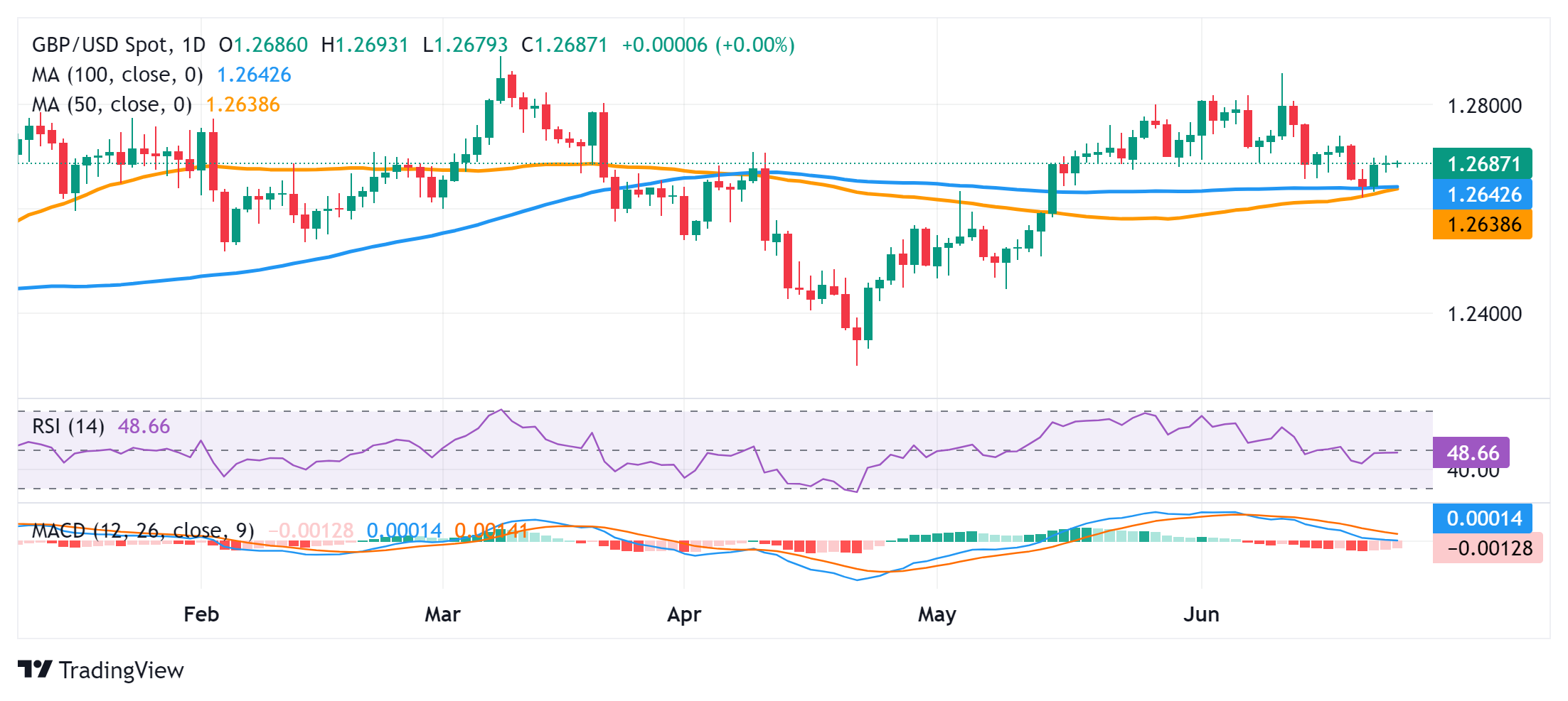 英镑/美元价格分析:合并低于1.2700,50/100天最低限度标准的汇合是关键