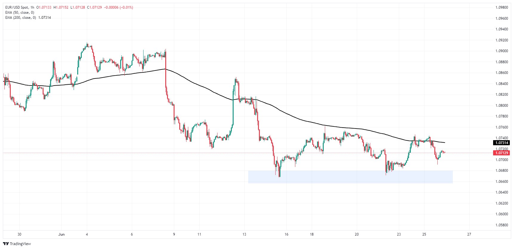由于从1.071开始200小时指数移动平均指数(EMA)对盘中价格波动的影响,继续被挤入短期整合,但低于1.0680的需求区正在证明是技术支持,并支持了投标。
