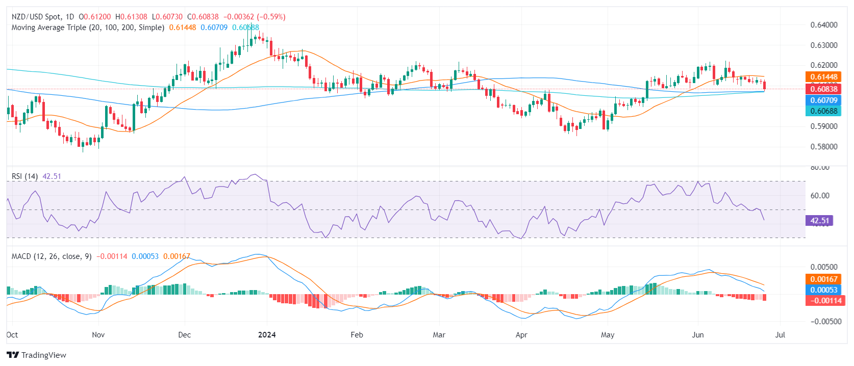 每日图表上的相对强度指数(RSI)降至42,表明看跌势头不断加深。尽管它还没有达到超卖的门槛,下降的趋势是明显的。移动平均收敛分歧(MACD)表明,随着红条的上升,市场情绪看跌,从而肯定了卖方的强势地位。