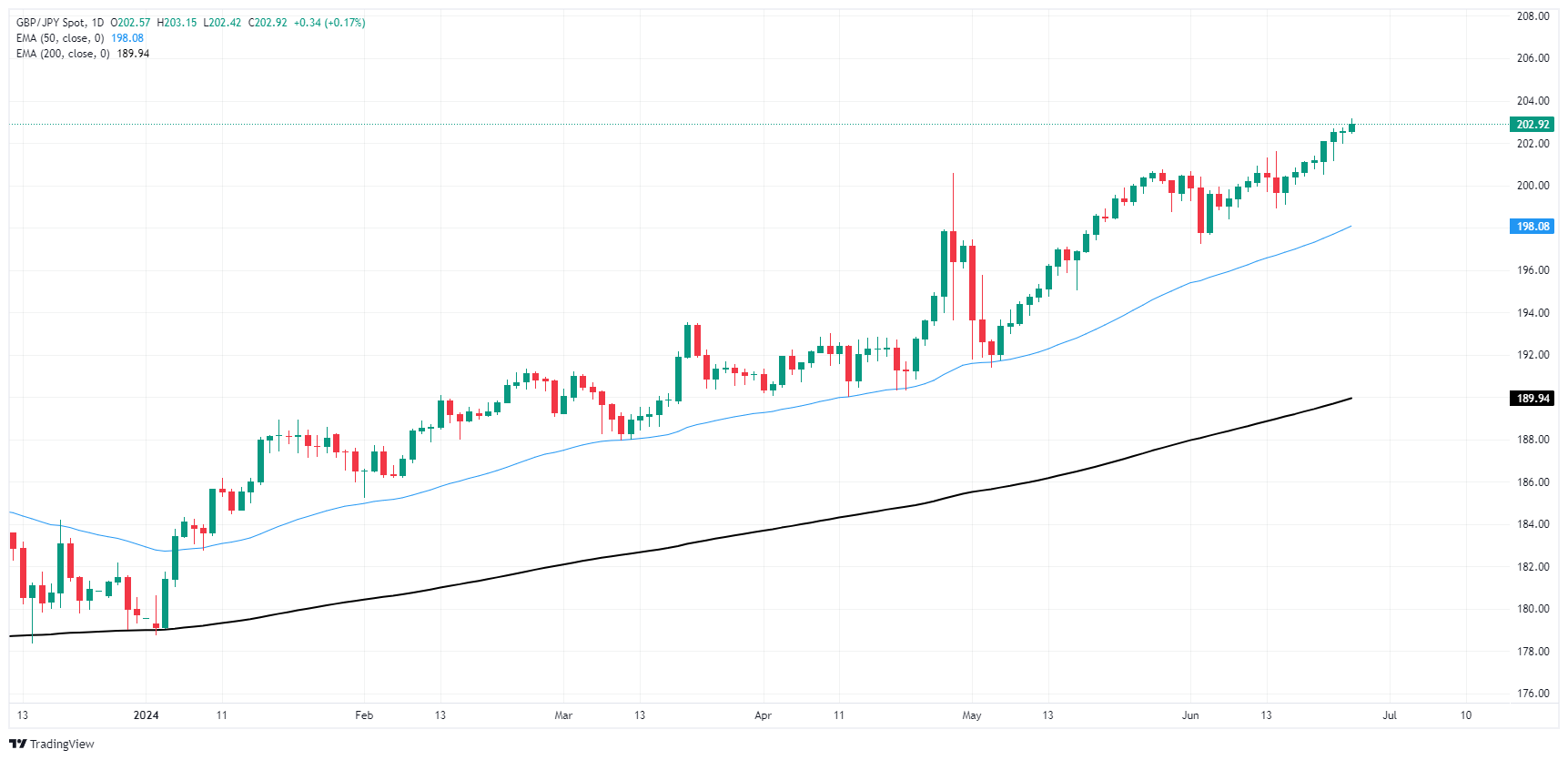 每日的烛台已经连续第八次增加,因为格比继续向204.00前进。这对选手在2024年上涨了13%,并连续六个月在绿区关门。