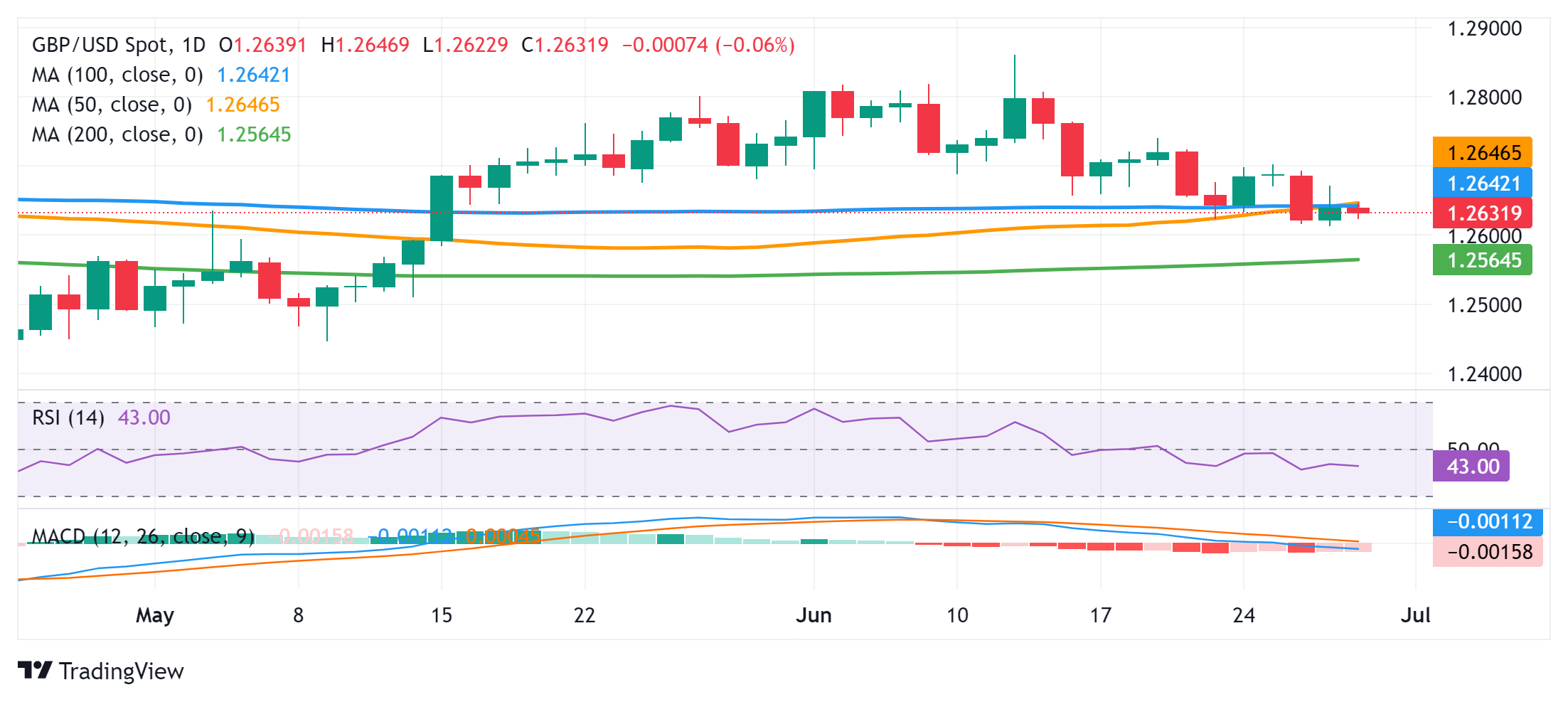英镑/美元对延长了从1.2670区的一夜之间的延迟撤出,并在上周五的亚洲交易中出现了轻微的负偏倚。现货价格目前徘徊在1.2635-1.2630地区附近,保持在5月中旬触及的最低水平的惊人距离内。