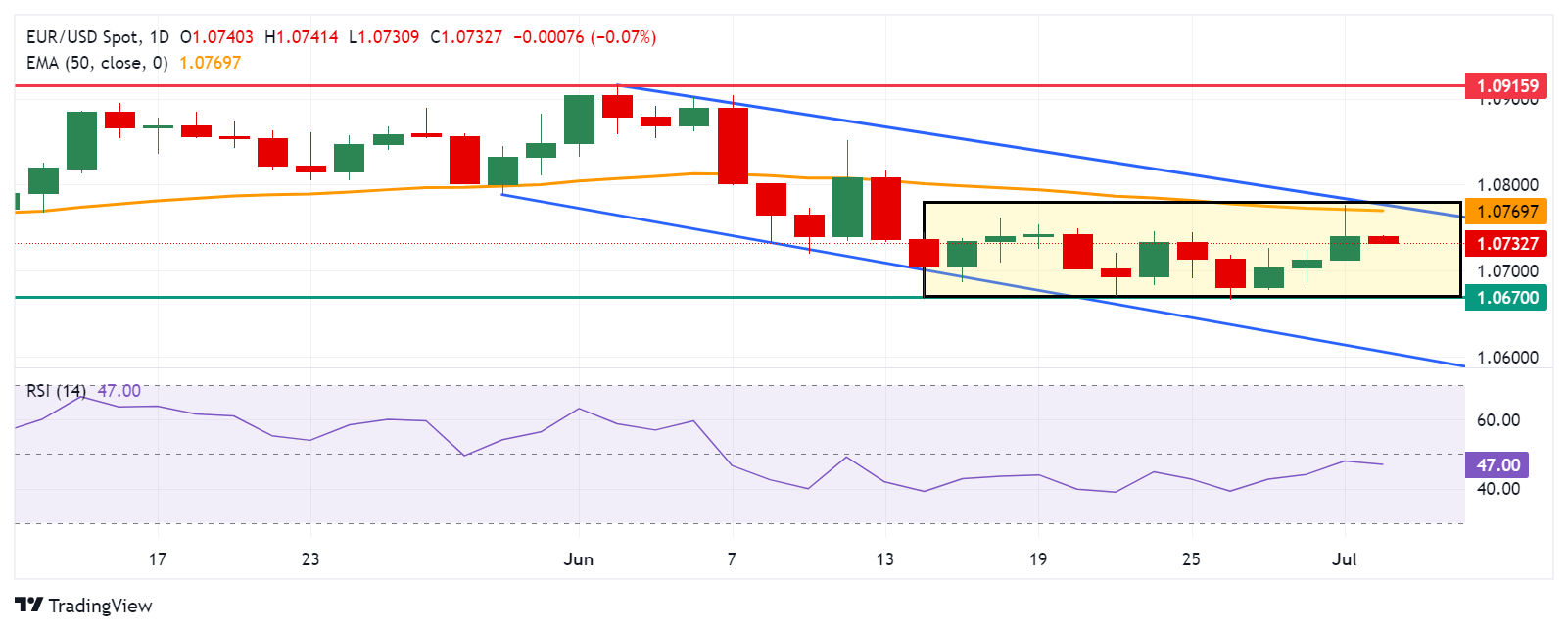 欧元/美元价格分析:在合并范围内徘徊在1.0750左右