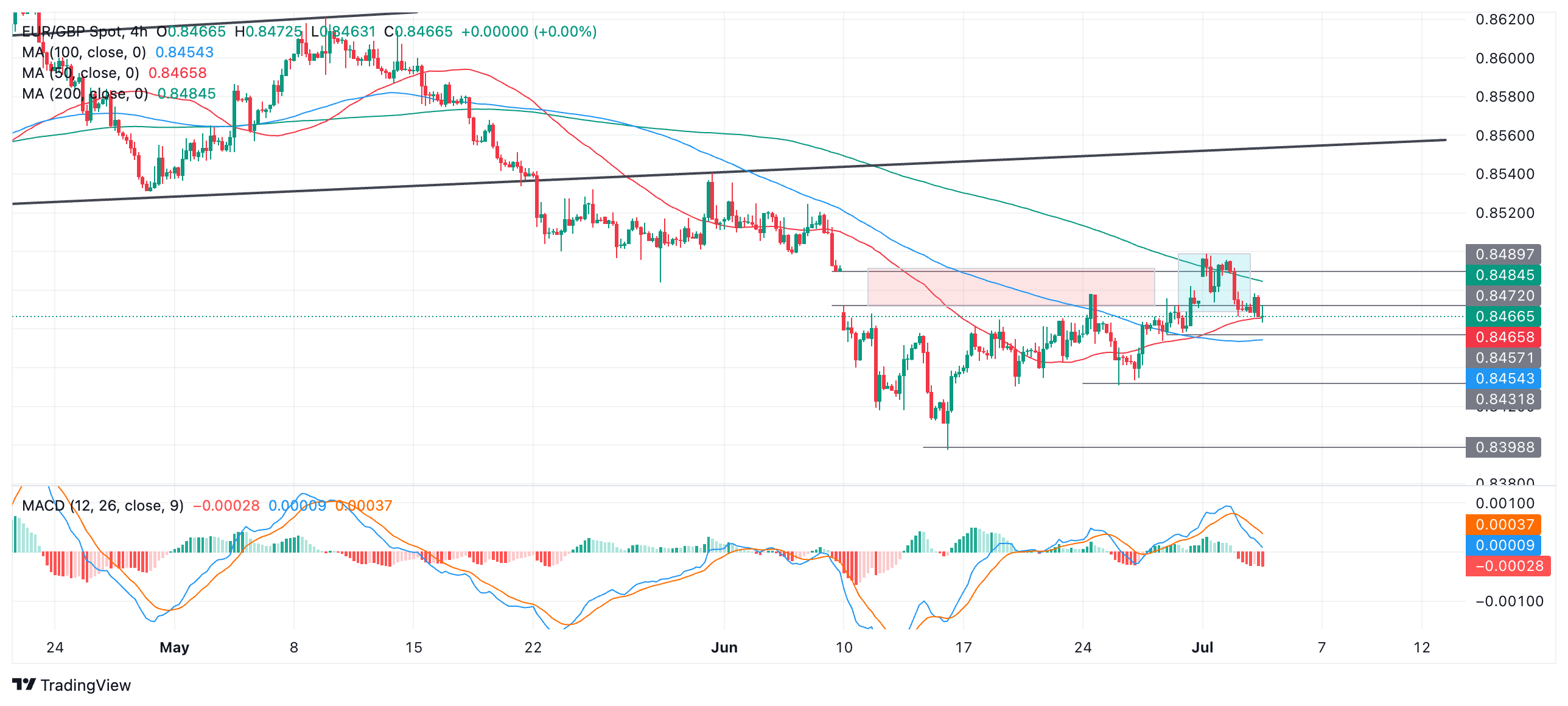 然而,这对组合仍有可能恢复,超过0.8499(7月1日n)高点的突破表明,修正幅度将继续上升,50天的简单移动平均值为0.8517,提供了下一个阻力目标的上升。