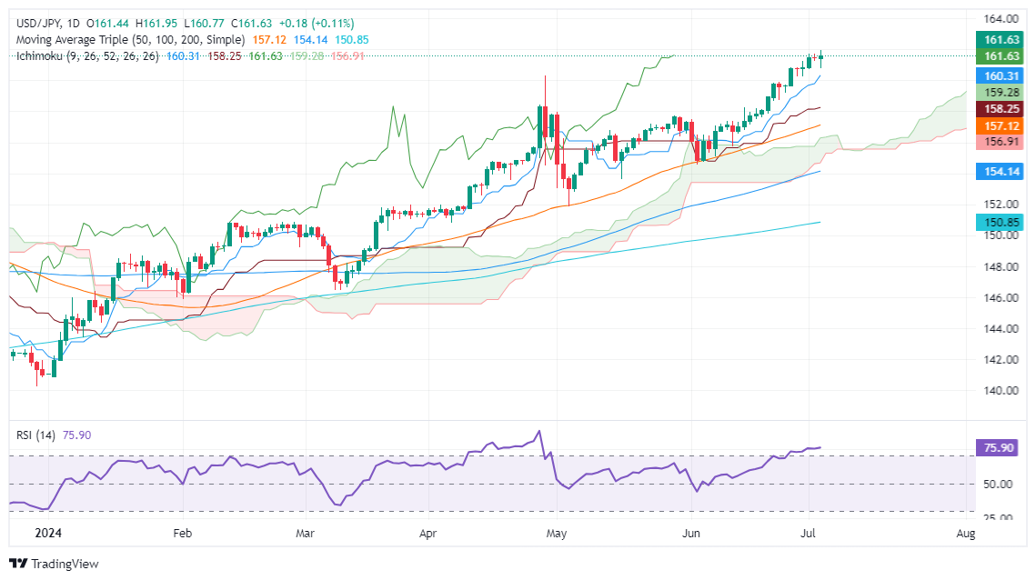美元/日元价格分析:美元/日元进一步疲软的情况下,第一轮支持将是161.00