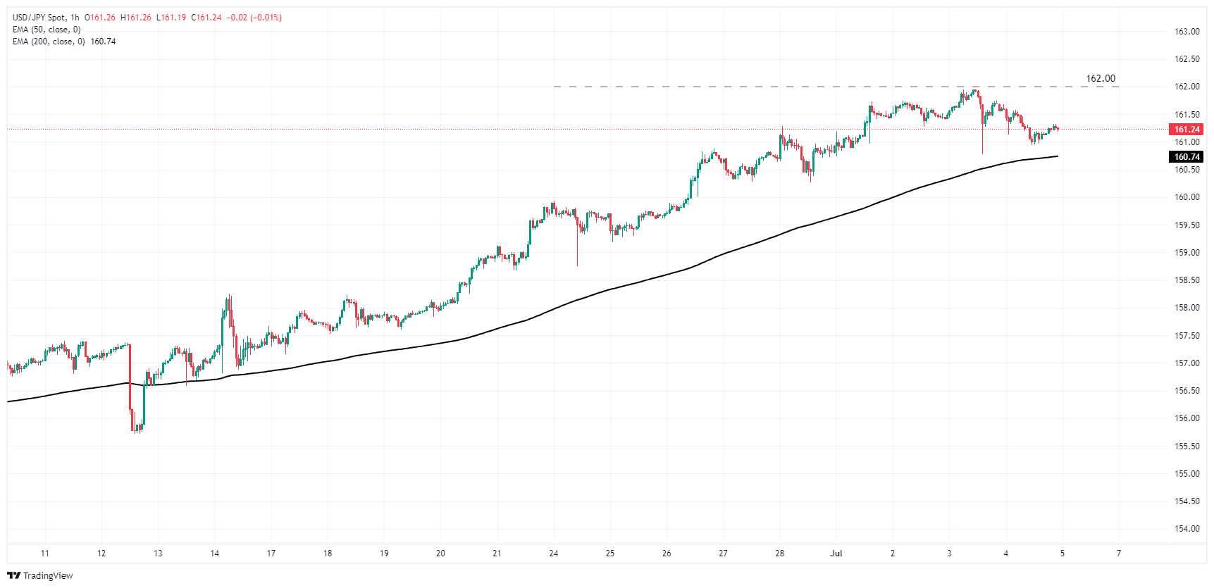 随着日元因遭受熊市冲击而获得急需的休息,日元略有减弱。两人在周三的周中高峰期从162.00点跌出了几个百分点,随后随着周五美国股市的起落,他们的交易模式趋于温和。 非农业就业人数 劳动数据打印。