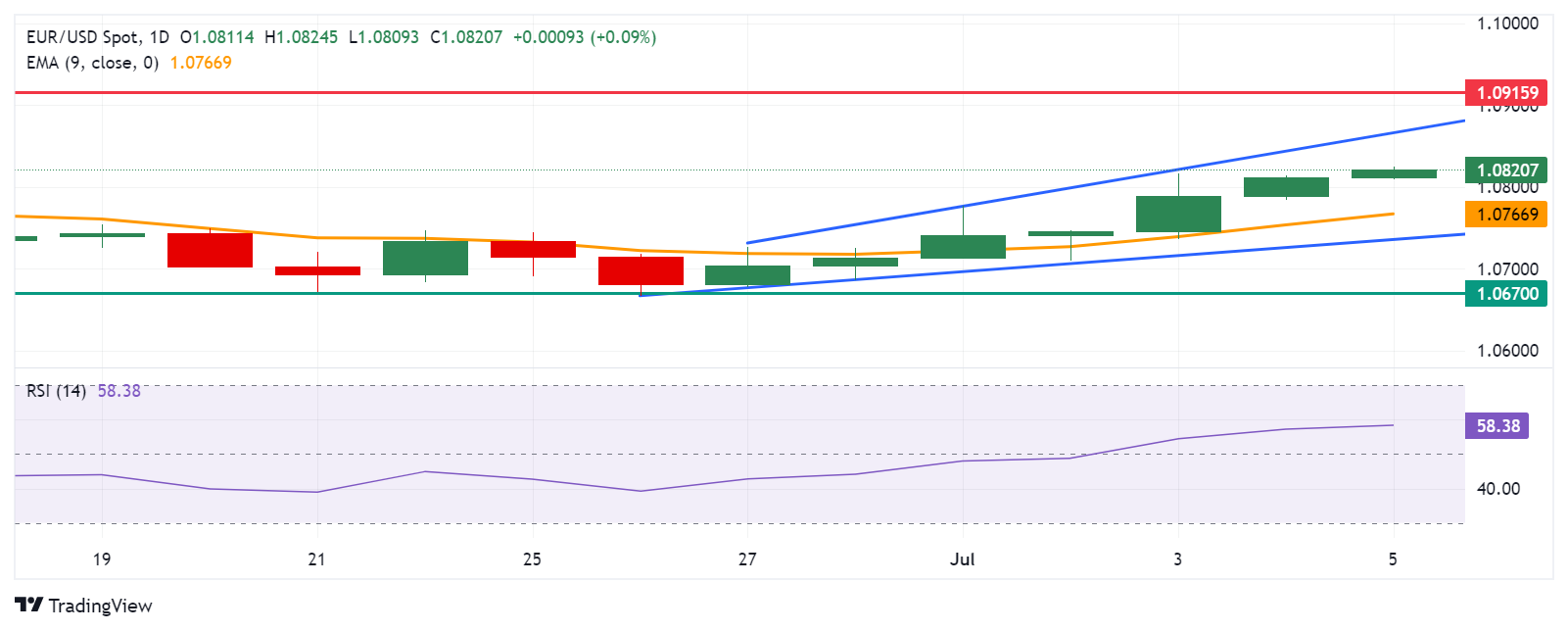 欧元/美元可以在9天EMA的1.0766水平找到关键的支持。