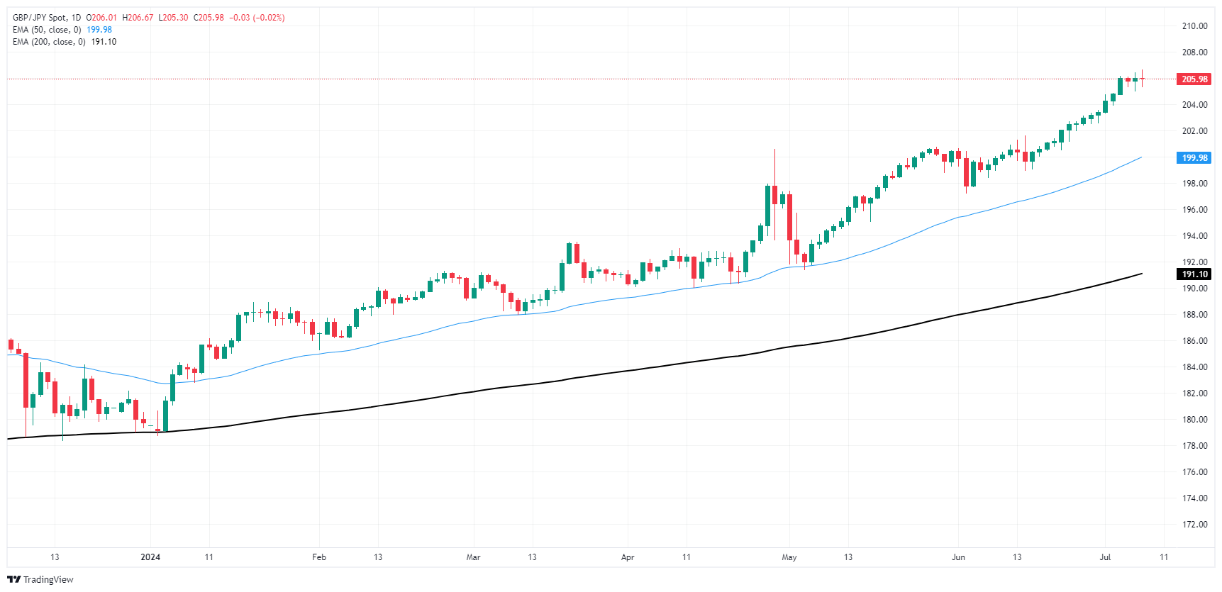 英镑/日元继续磨出新的峰值,但封顶模式正在增长。