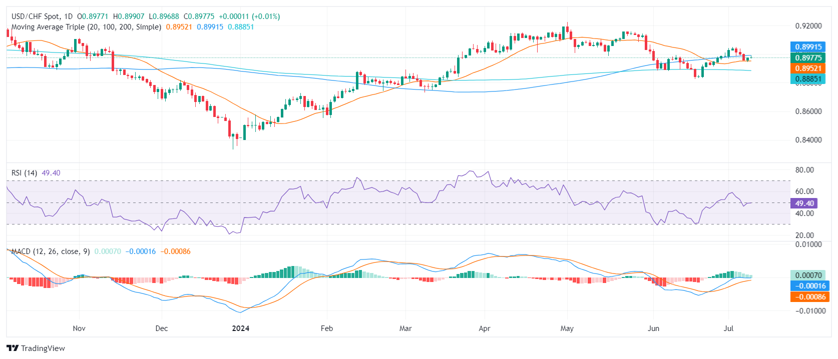 技术分析:美元/瑞士法郎小幅上涨至0.8980,关注本周美国通胀数据