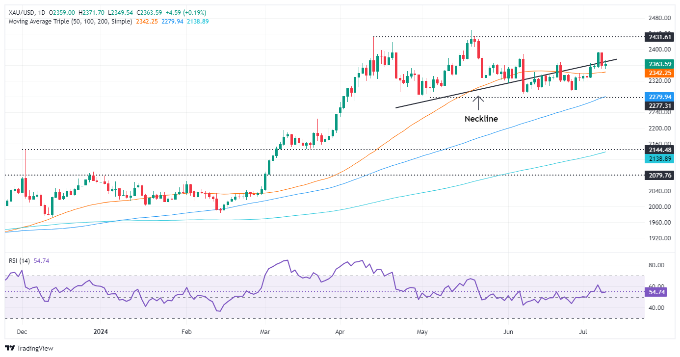 技术分析:黄金的第一个阻力将是7月5日2392美元的高点,然后是2400美元的高点