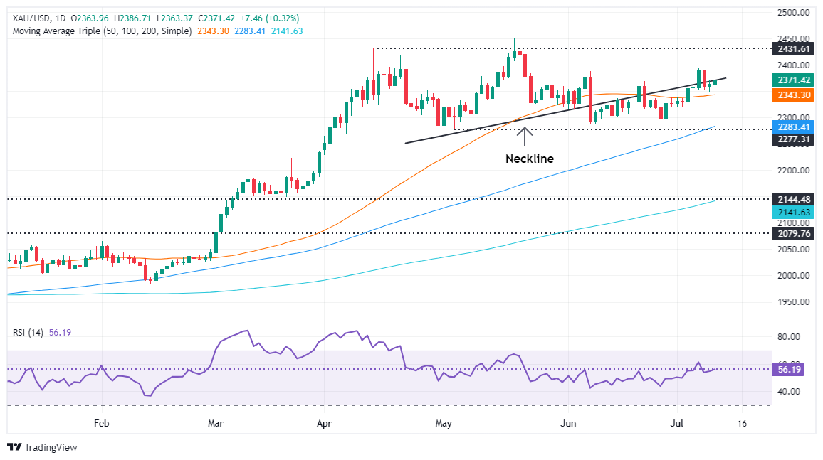 黄金价格分析:黄金/美元的第一个阻力位将是7月5日的高点2392美元,其次是2400美元