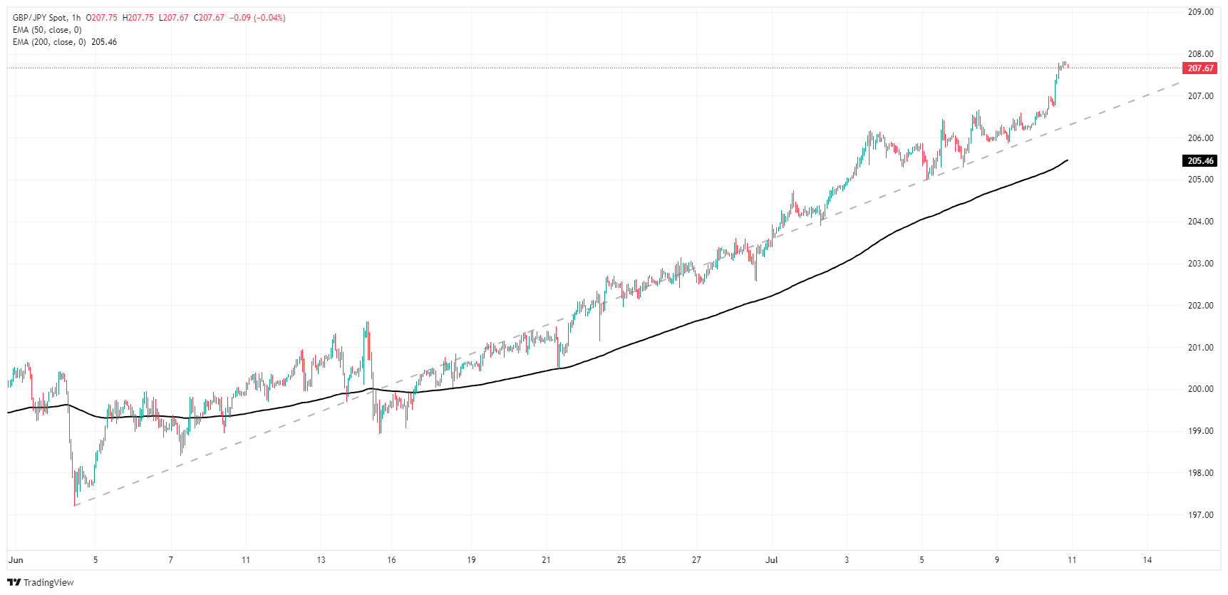 英镑/日元在持续的日元压力下继续刷新16年来的新高,周三Guppy指数在207.80点以上创下新高。由于缺乏来自日本的显著数据,日元处于一个非常深的利差底部,市场对英格兰银行(BoE)降息的希望反弹,英镑全面上涨。