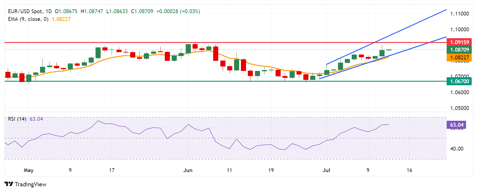 欧元/美元连续第三天保持涨势,周五亚洲时段交易在1.0870左右。欧元/美元对找到支撑,因为6月份美国消费者价格指数(CPI)数据低于预期,美元(USD)走弱。这增加了人们对美联储(Fed)9月份可能降息的预期。