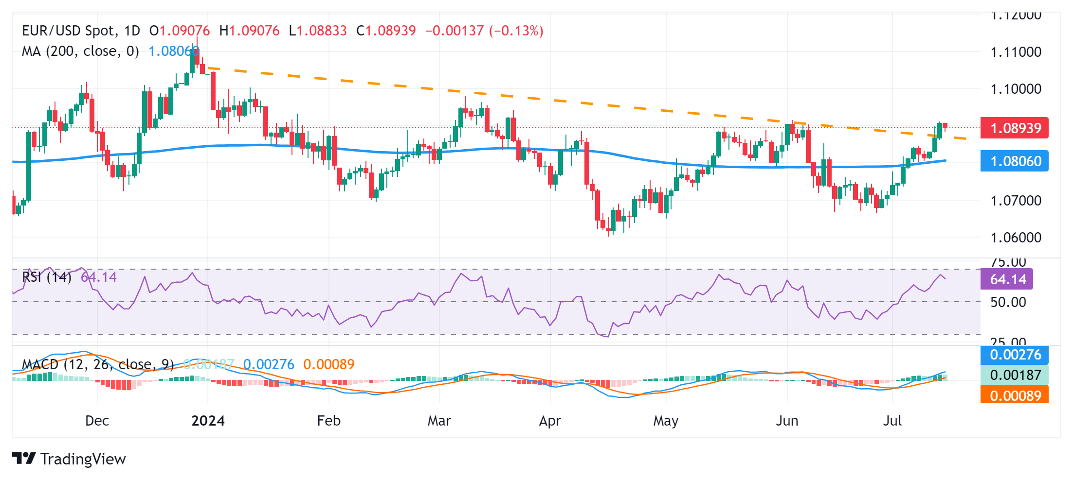 从技术角度来看,最近突破1.0800汇点障碍(包括50天、100天和200天简单移动平均线(SMA))和向下倾斜的线有利于看涨的交易者。此外,日线图上的振荡指标一直在获得积极的牵引力,并表明在温和的美联储(Fed)预期下,欧元/美元对阻力最小的路径是上行。