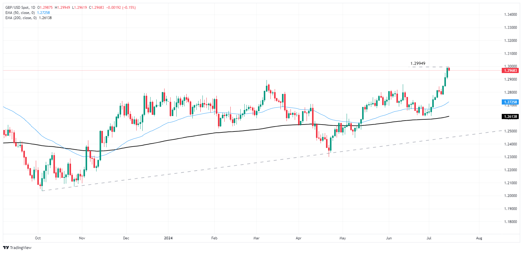 周一,英镑/美元从看涨势头中喘息,在外汇市场暂停抛售美元以重新考虑最近的走势并重新权衡美联储(Fed)9月降息的可能性后,回落至略低于1.3000的水平。