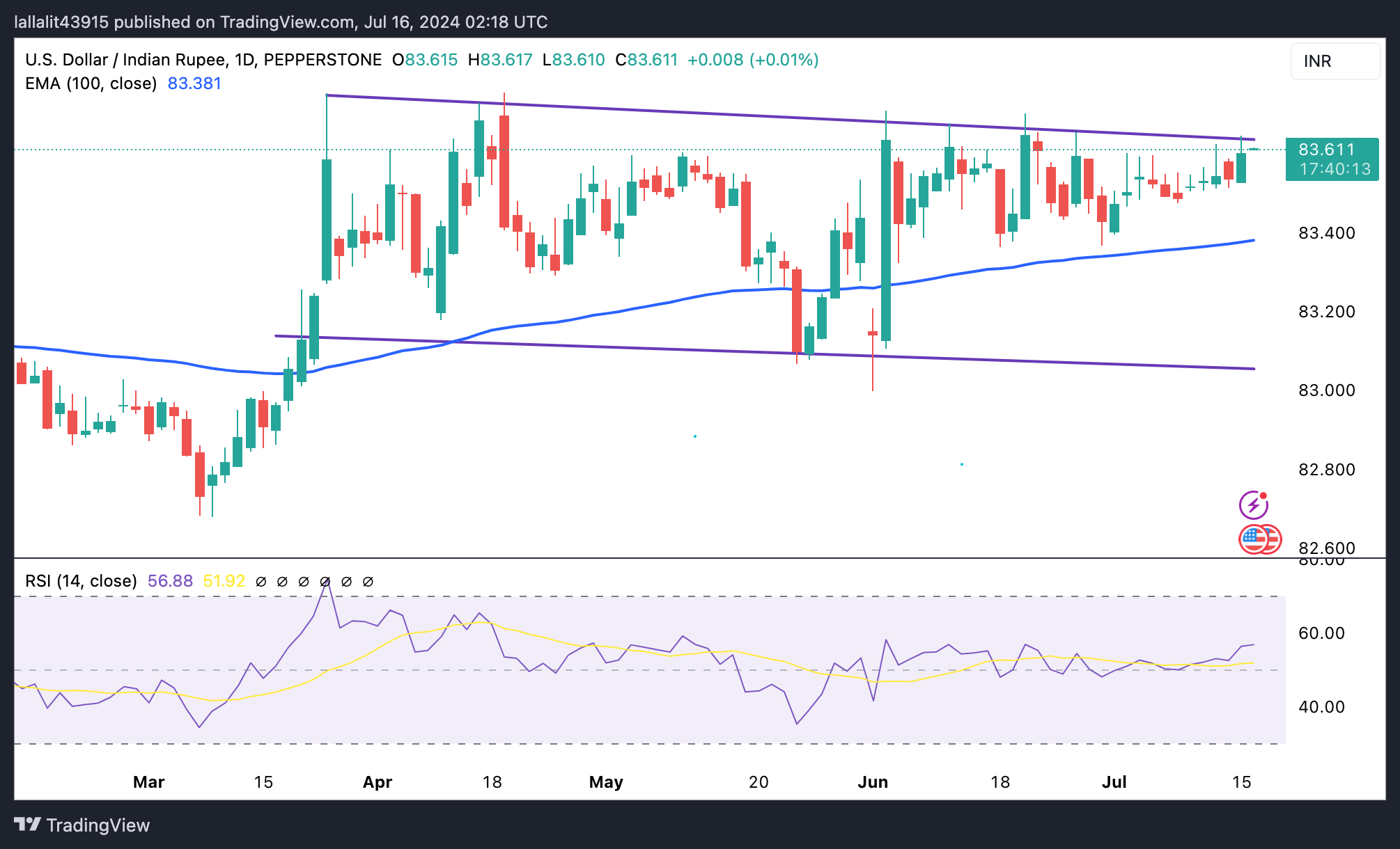 技术分析:美元/印度卢比交易带有看涨倾向,投资者等待美国零售销售数据
