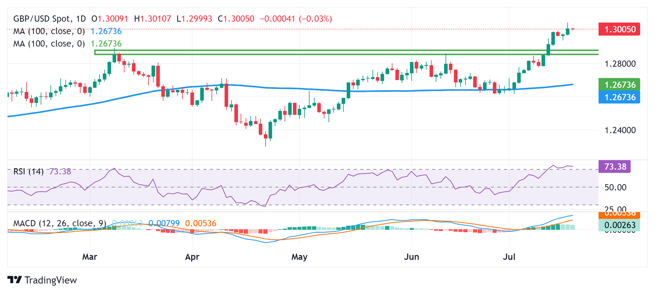 略微超买的RSI被认为会阻止多头进行新的押注。