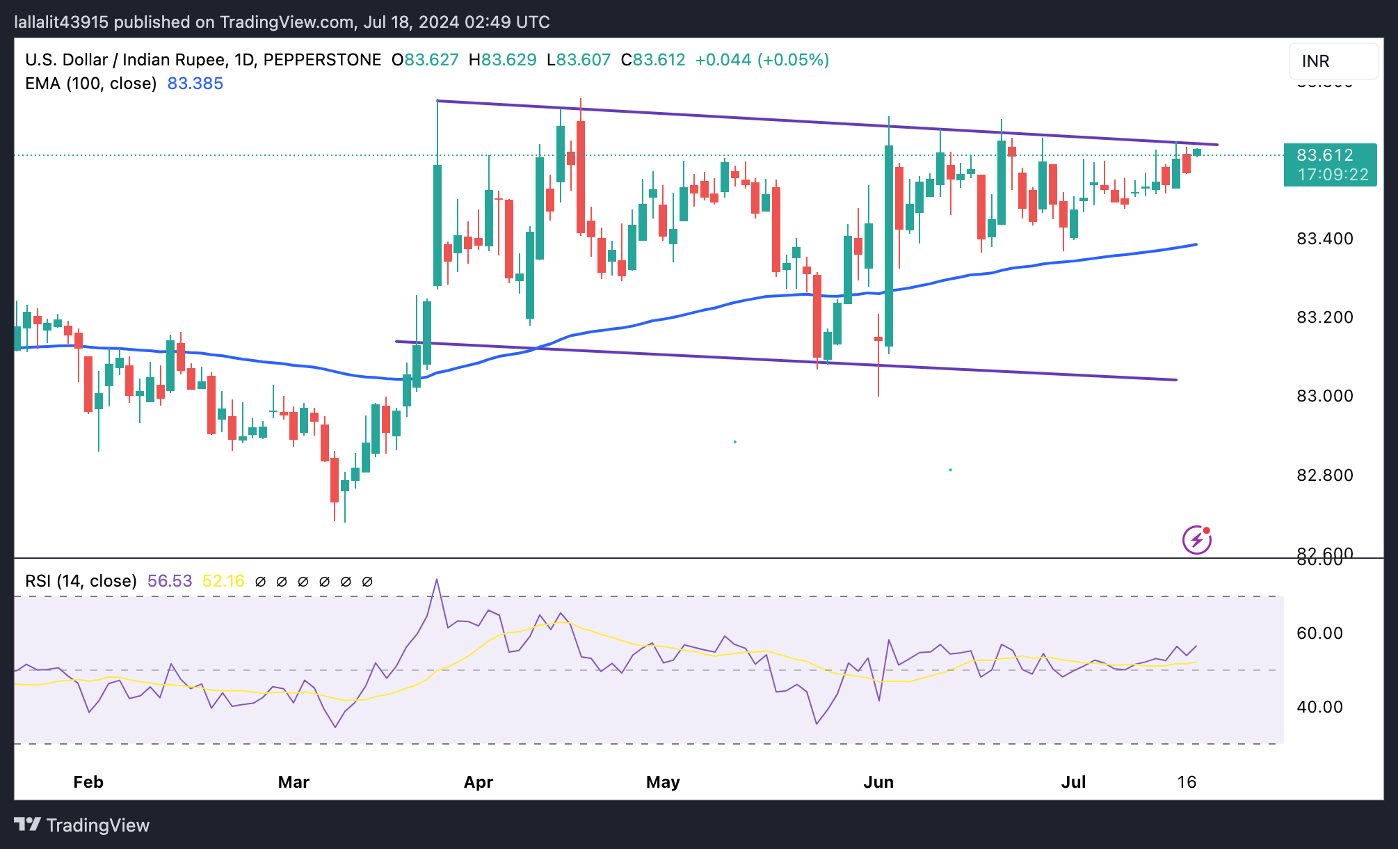 技术分析:尽管有美联储降息的希望,但美元/印度卢比仍保持上涨势头