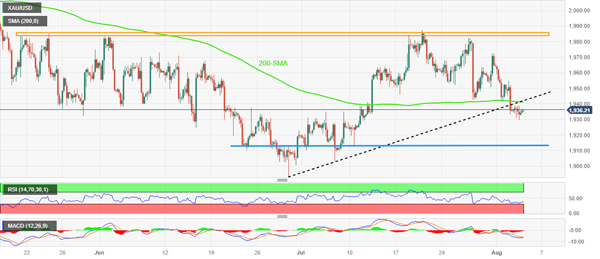 与此同时,200 移动平均线和支撑转阻力线从 6 月下旬开始一直延伸至 1,940 美元附近,这保证了金价的立即复苏。