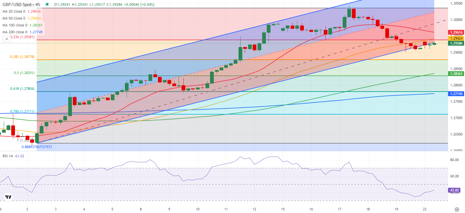 英镑/美元预测:支撑位在1.2900(心理水平,静态水平)、1.2875(斐波那契38.2%回撤)和1.2830(斐波纳契50%回撤,100期SMA)