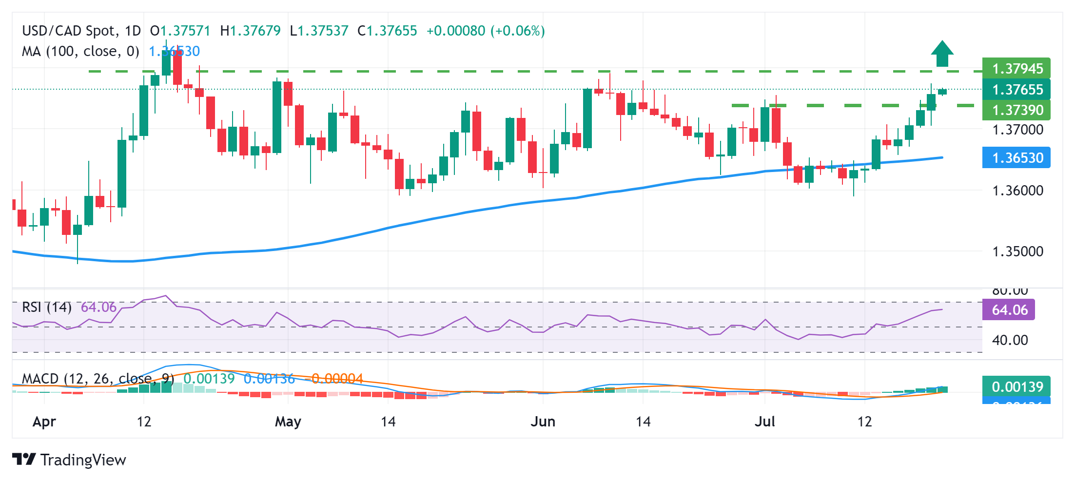 美元/加元价格分析:多头保持对1.3700中上方的控制,这是数周来的最高点