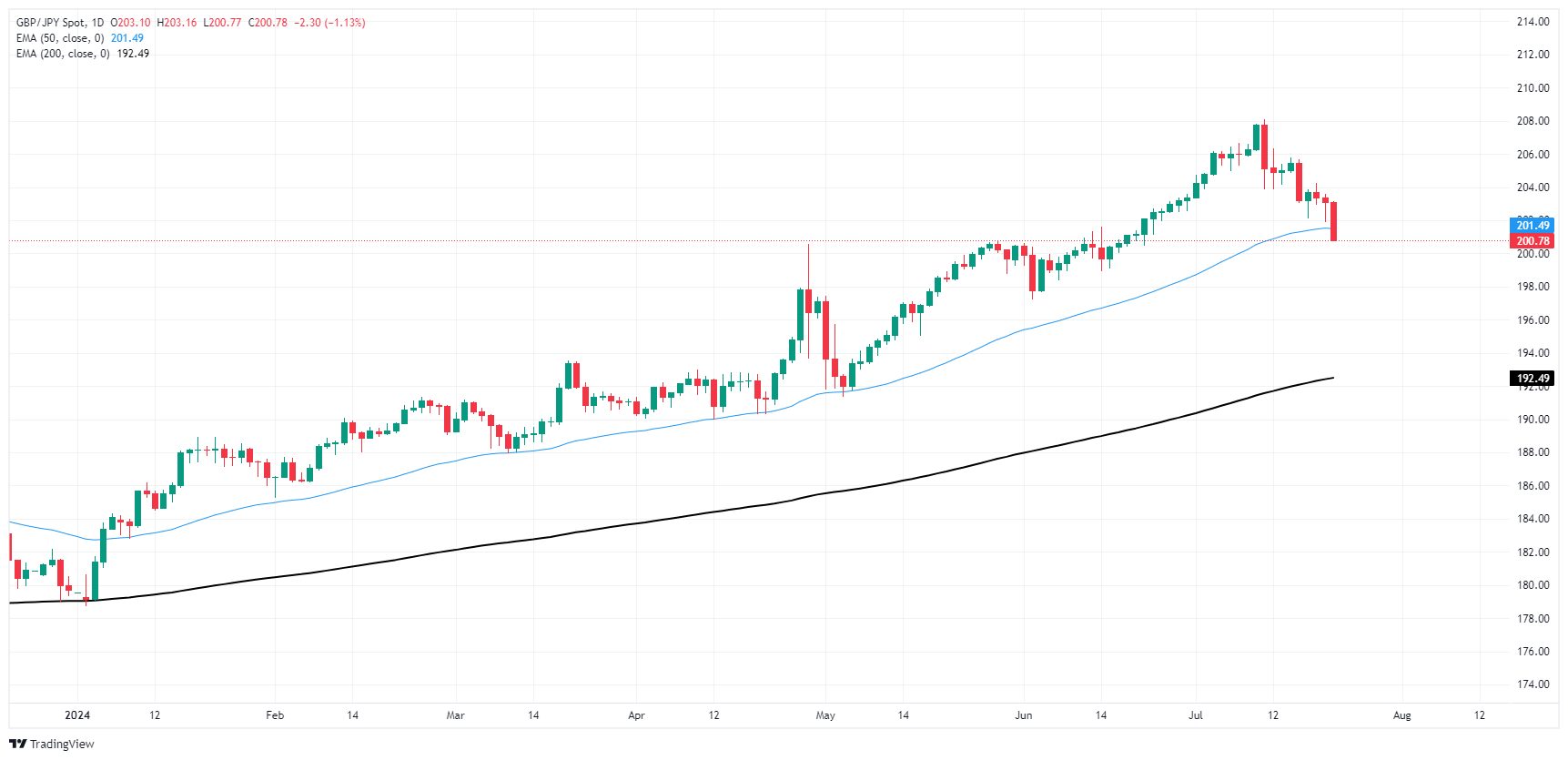 周二,英镑/日元进一步下跌,因为日本央行(BoJ)和日本财政部(MoF)为试图支撑陷入困境的日元而进行的一系列“干预”引发了日元的广泛基础复苏。综合日元指数(JXY)是衡量日元对其他主要全球货币整体表现的一篮子指标,在2024年从峰值到低谷下跌了12.62%,自2020年底的峰值以来下跌了惊人的37.51%。