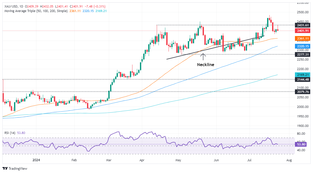 在形成“看涨哈拉姆”后,金价触及2430美元以上的三天高点,但已回落至7月23日2412美元的高点以下,暗示买家缺乏实力。每日收盘价低于后者可能会使黄金/美元面临进一步的抛售压力,尽管美国数据将推动周四和周五的价格走势。