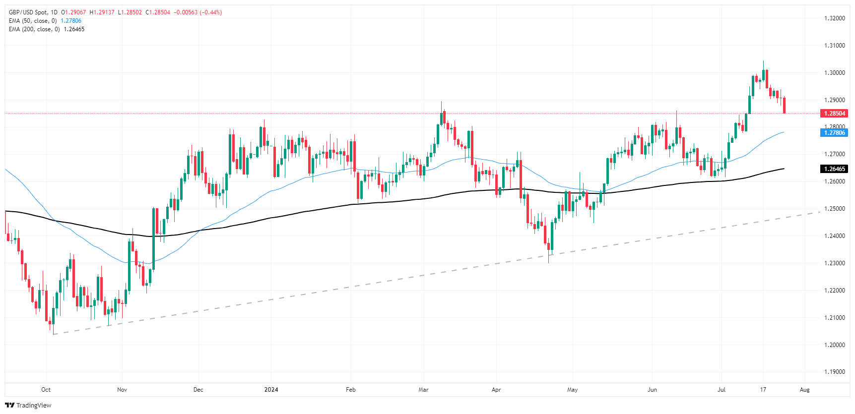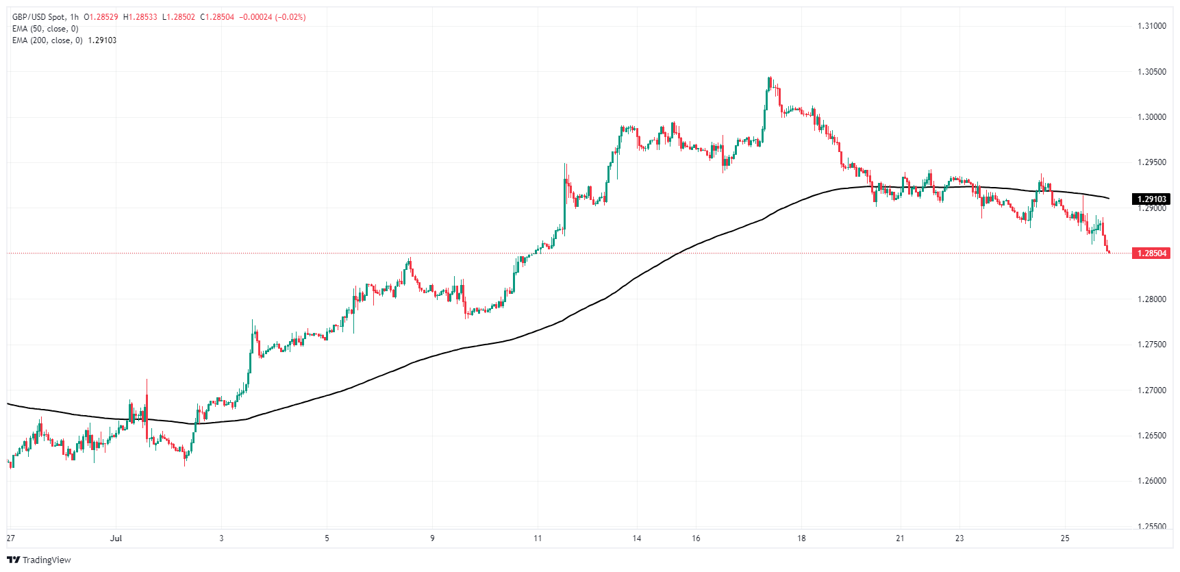 英镑/美元周四陷入困境,连续第三个交易日出现下跌,跌破1.2860,因为市场对英国央行(BoE)下周降息的预期压低了英镑。