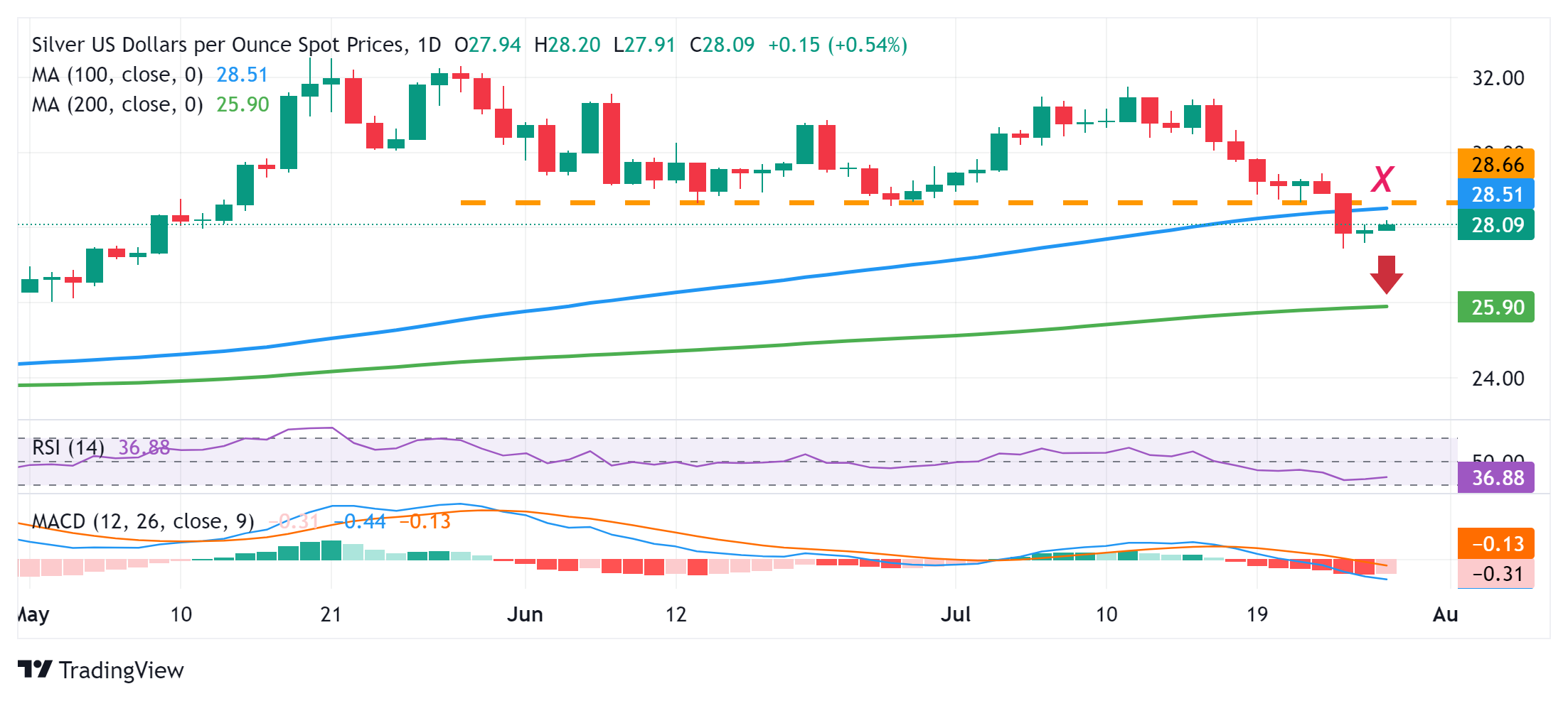 白银价格分析:XAG/USD稳定在28.00美元以上,尚未走出困境