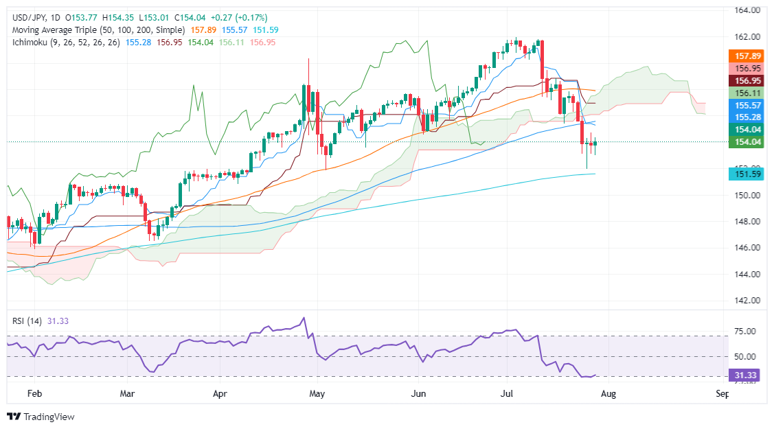 美元/日元价格分析:巩固在154.00左右,但仍然看跌
